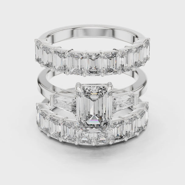 Art Deco Emerald Cut Bridal Ring Set, Eternity Bands