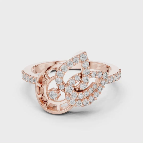 Abstract Circular Diamond Swirl Ring PavΓ© Openwork Modern Statement Band for Women