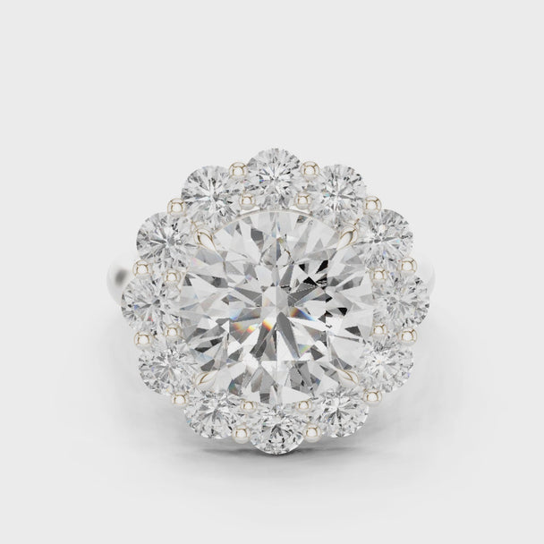 4.75Ct Round Cut Halo Engagement Ring: Solid Gold or Sterling Silver