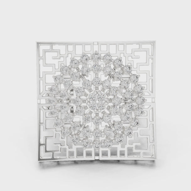 Art Deco Statement Ring Geometric Diamond Cluster Bold Architectural Prong Set Luxury Bridal Jewelry