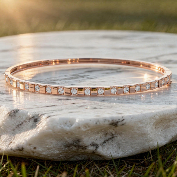 Solid Gold Diamond Station Bangle Bracelet, Modern Minimalist Jewelry