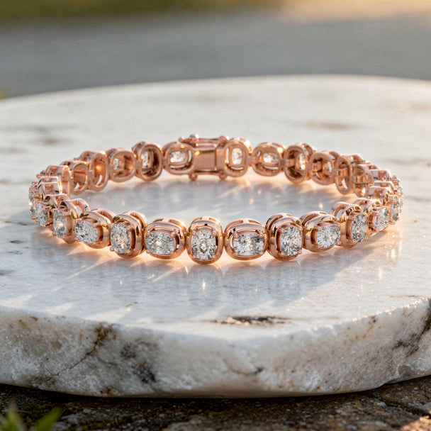 Bezel Set Round Diamond Tennis Bracelet, Solid Gold or Sterling Silver
