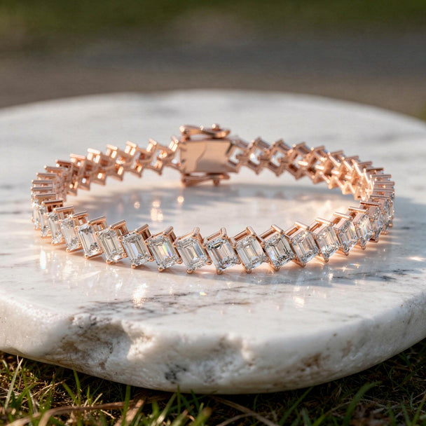 Emerald Cut Lab-Grown Diamond Tennis Bracelet, Solid Gold