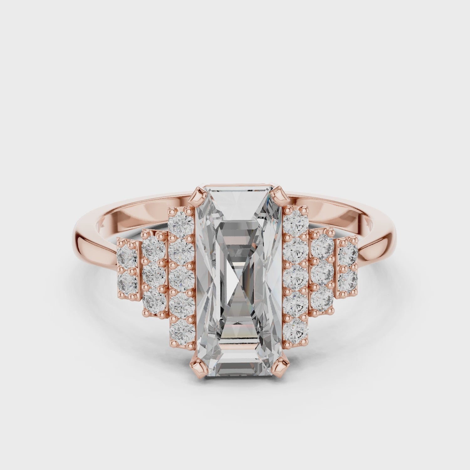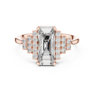 Bold, radiant, and unforgettable—this emerald-cut ring is designed to turn heads with its striking center and sparkling accents.
