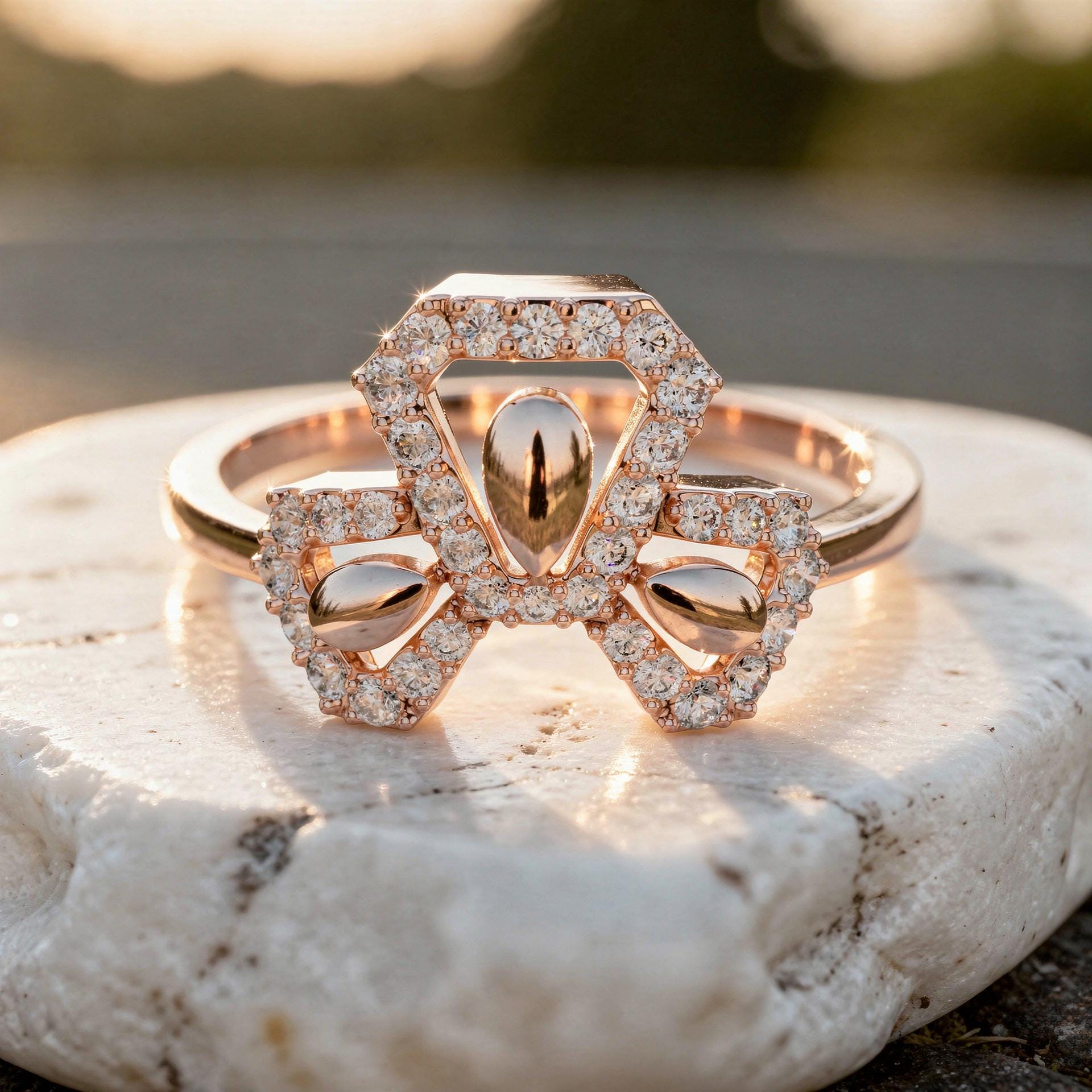 - Bow Diamond Ring: Pave Lab-Grown Diamonds, Solid Gold
