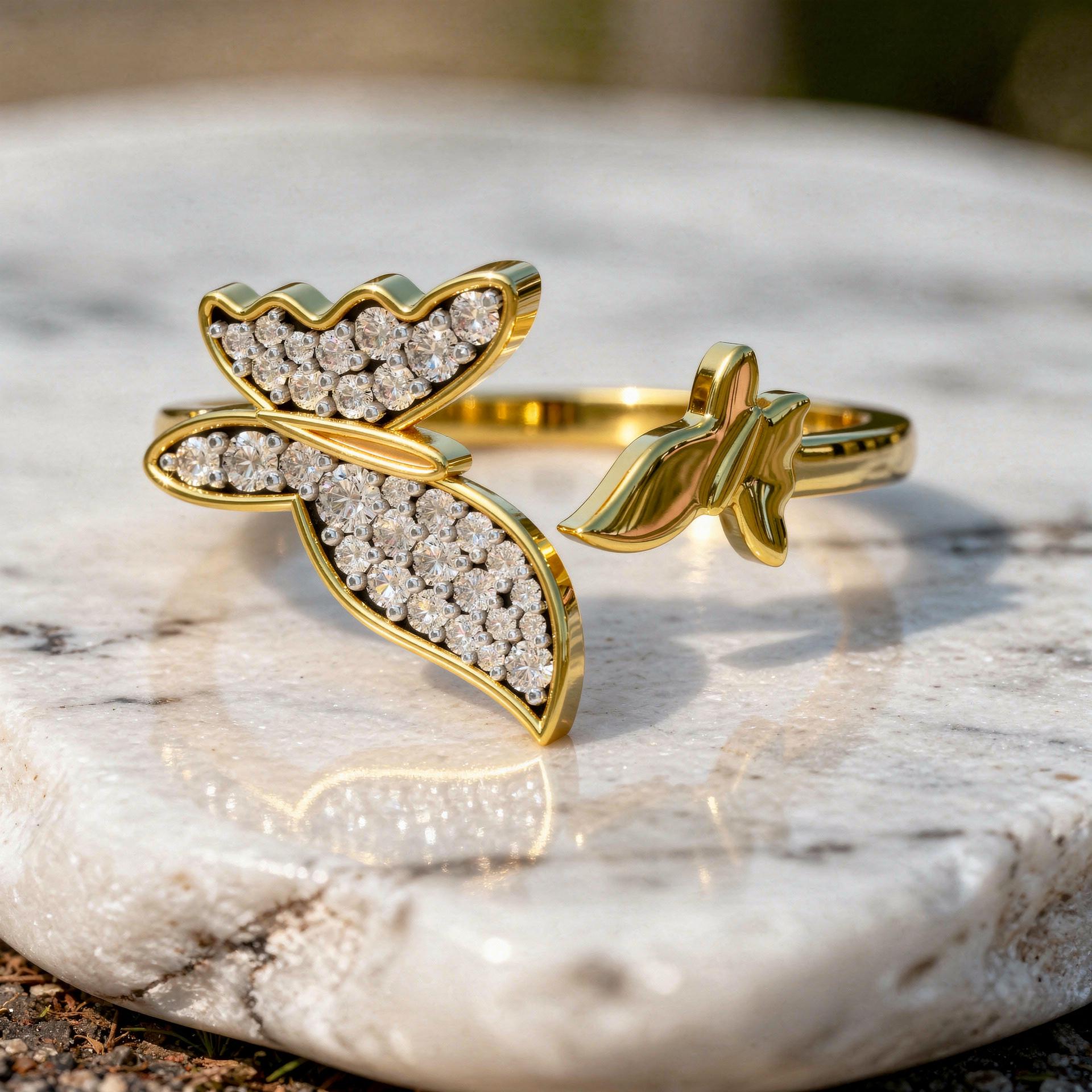 A delicate butterfly-inspired diamond ring crafted in a graceful open-wing design.