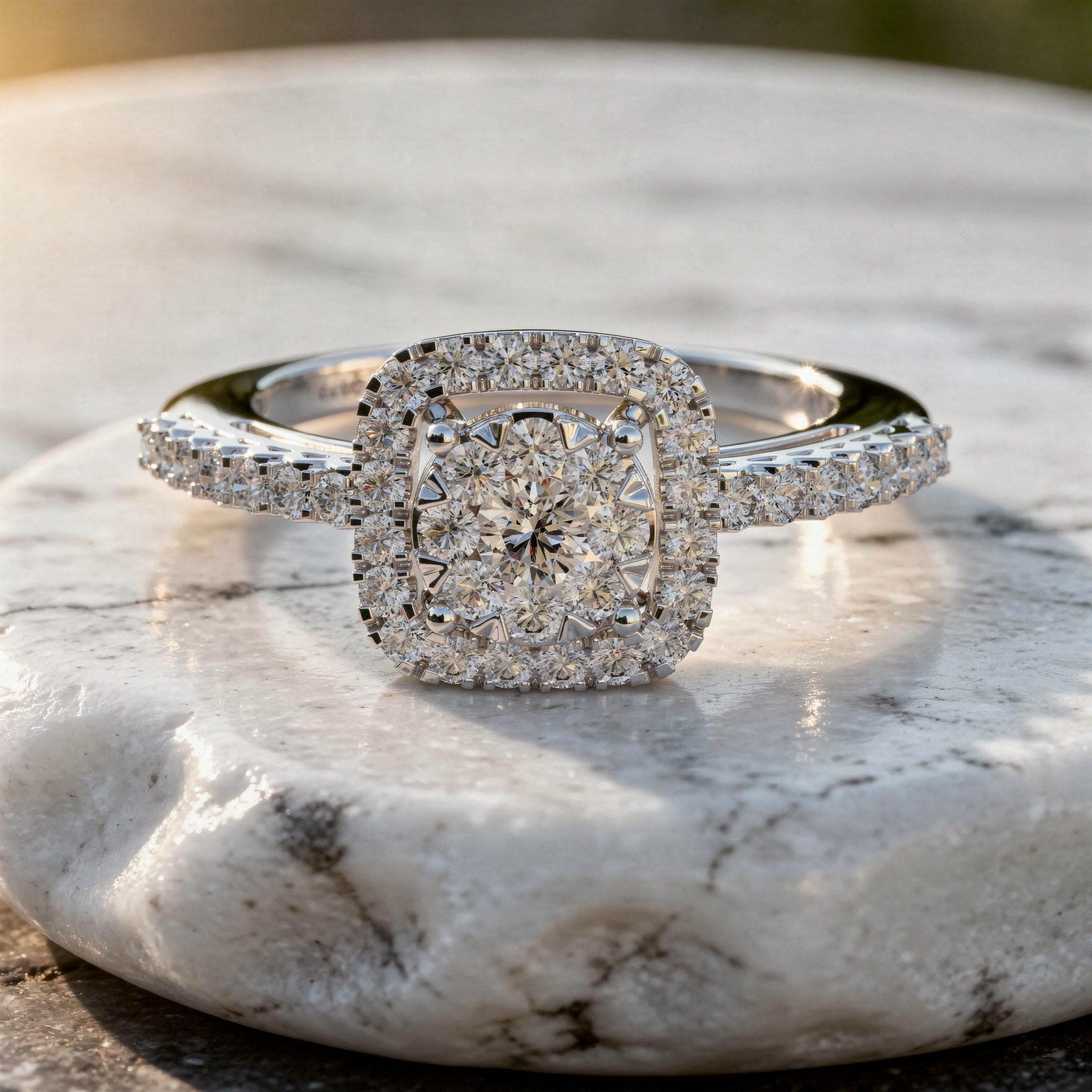 Cushion Halo Cluster Diamond Ring Pavé Split Shank Luxury Statement Engagement Ring