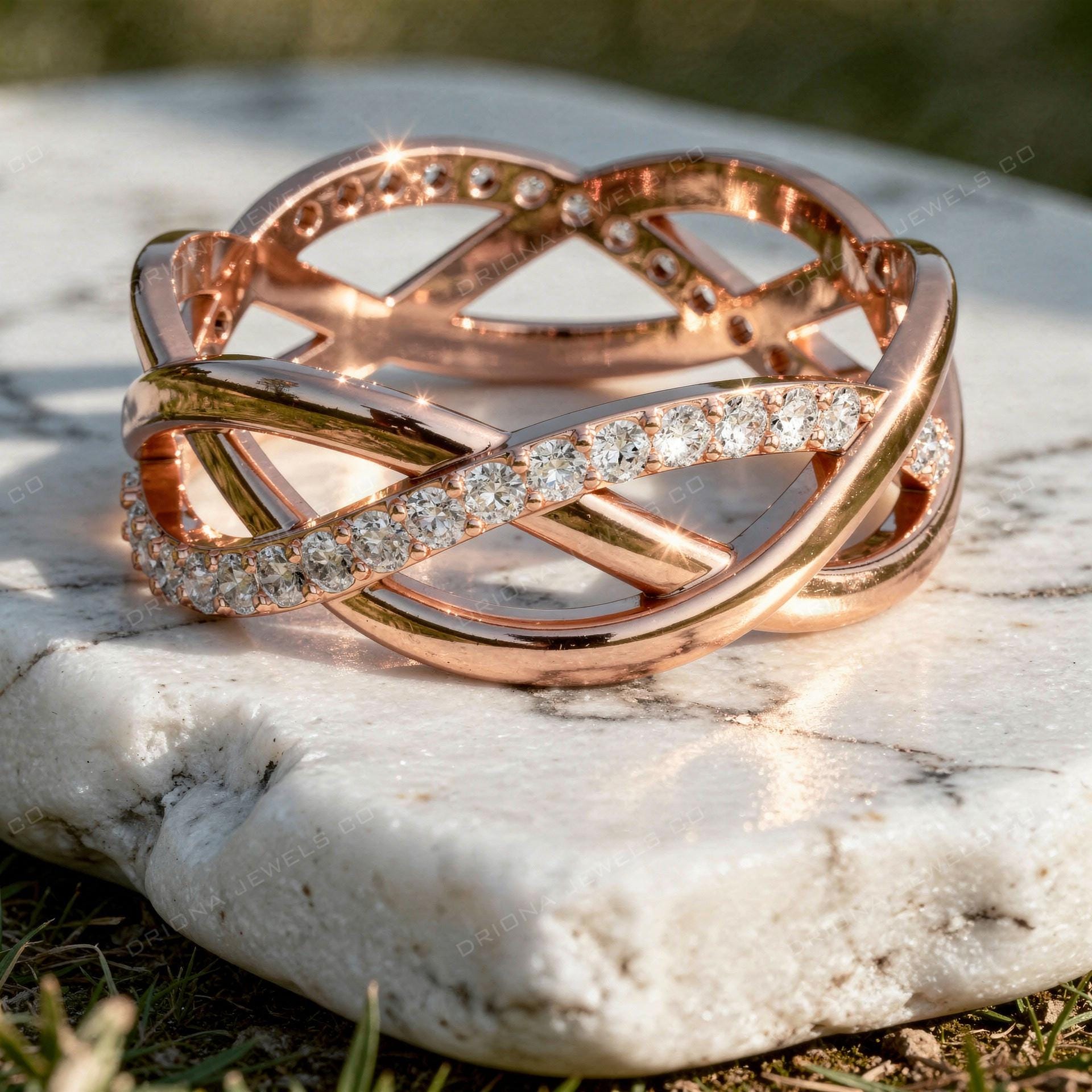 - Diamond Criss Cross Band Modern Infinity Statement Wedding Ring