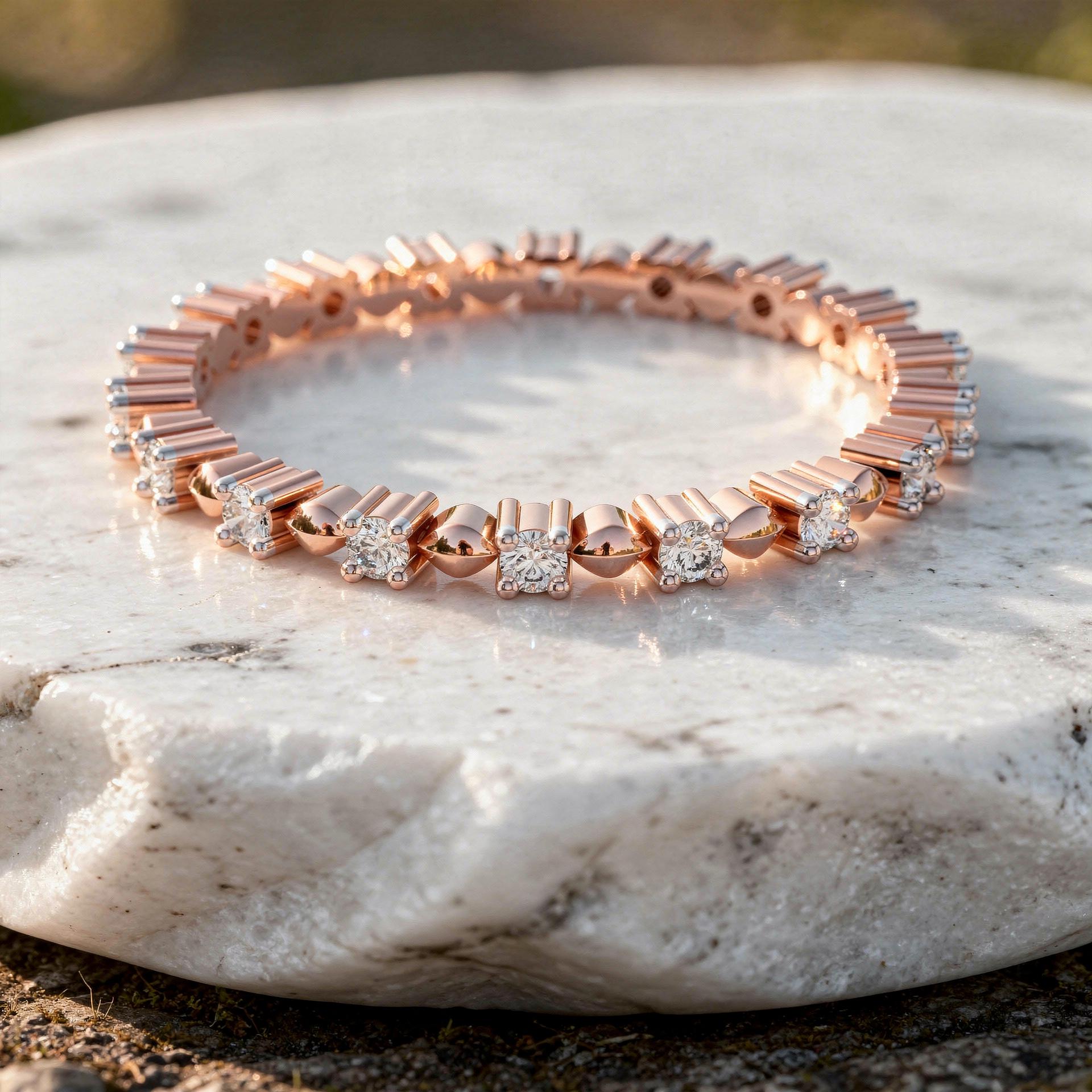 Designed for everyday elegance, this ring delivers a modern luxury look with a structured yet delicate rhythm, perfect as a wedding band, stacking ring, or anniversary piece.