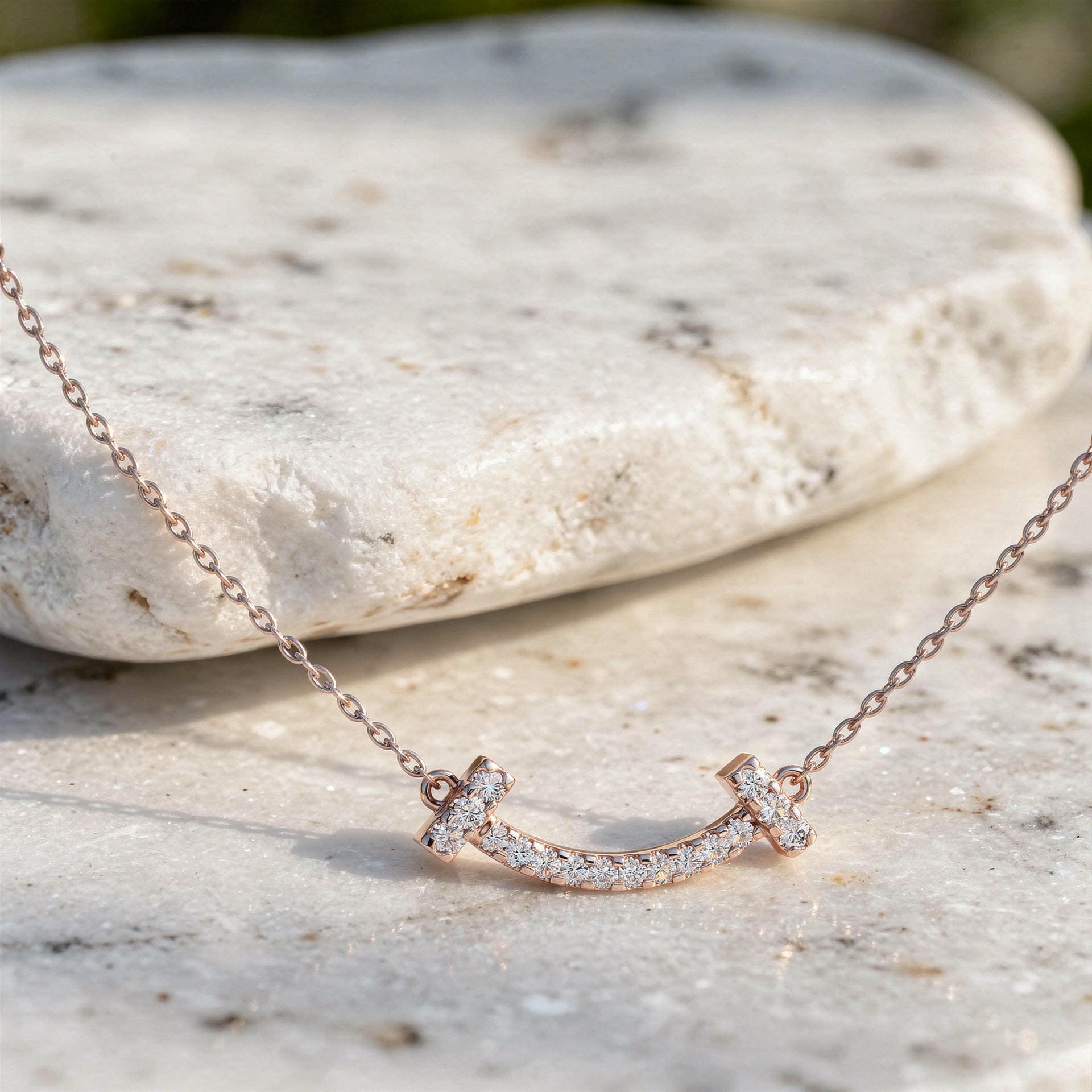 - Diamond Smile Bar Necklace in 14K Rose Gold