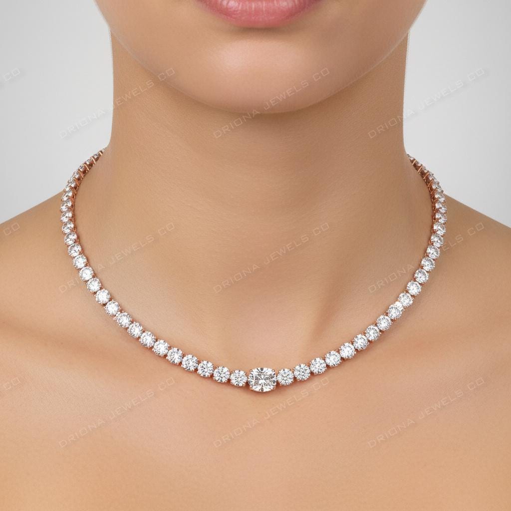 - Diamond Tennis Necklace, Solid Gold Wedding Jewelry