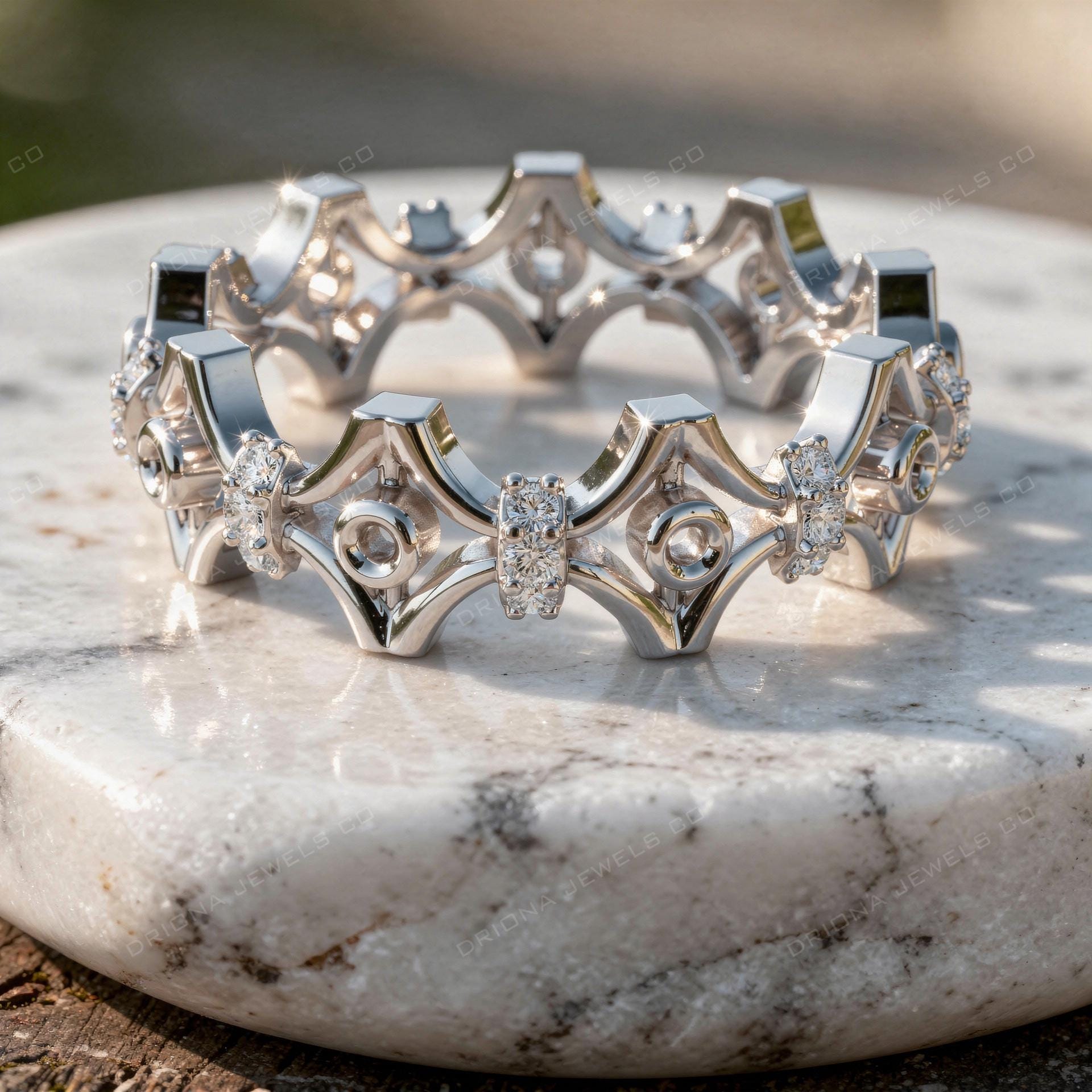 Designed for those who prefer unique statement jewelry, this ring works beautifully as a wedding band alternative, anniversary ring, or signature fashion piece. Its clean geometry and balanced sparkle make it both striking and wearable.