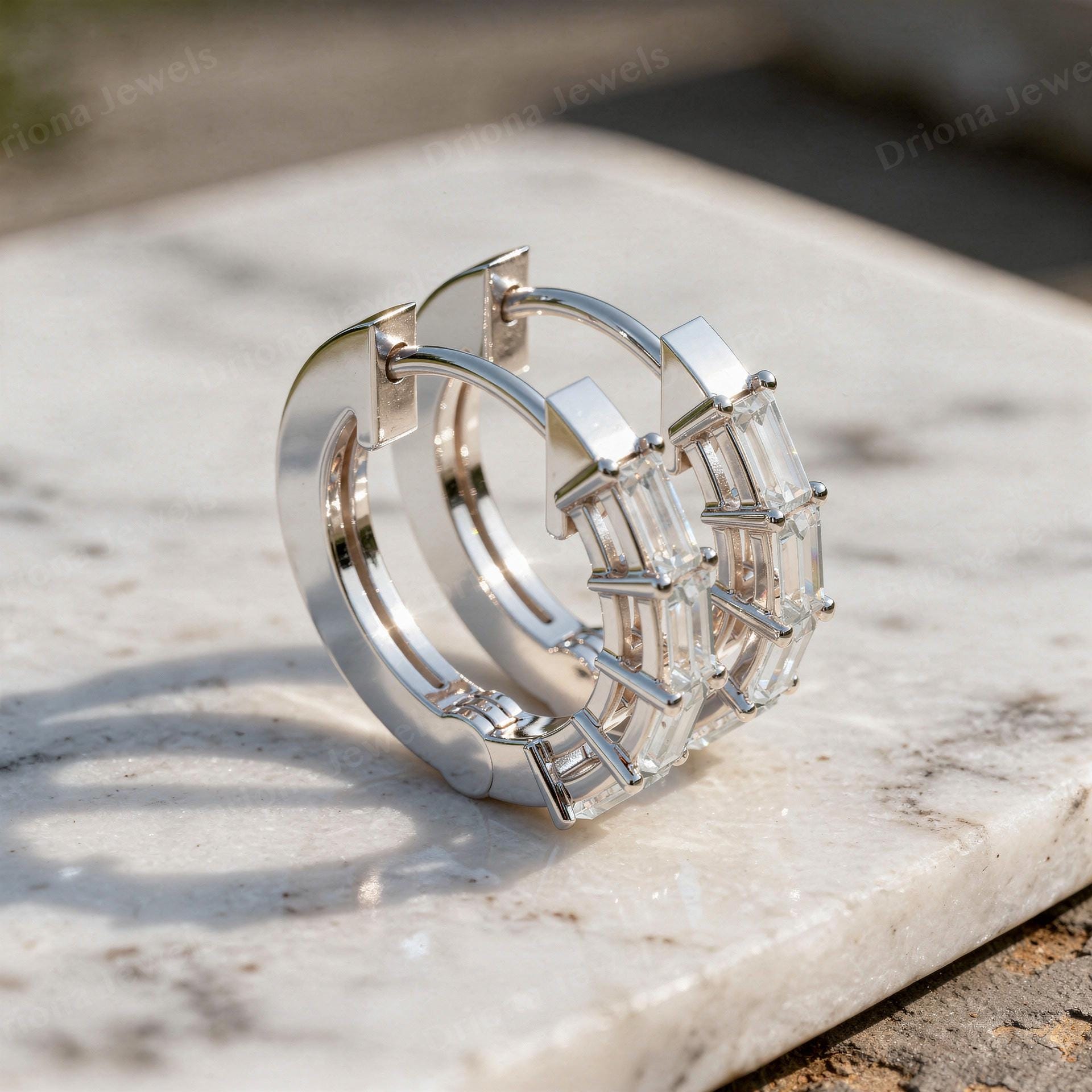 - Emerald Cut Baguette Hoop Earrings – Solid Gold Huggie Earrings
