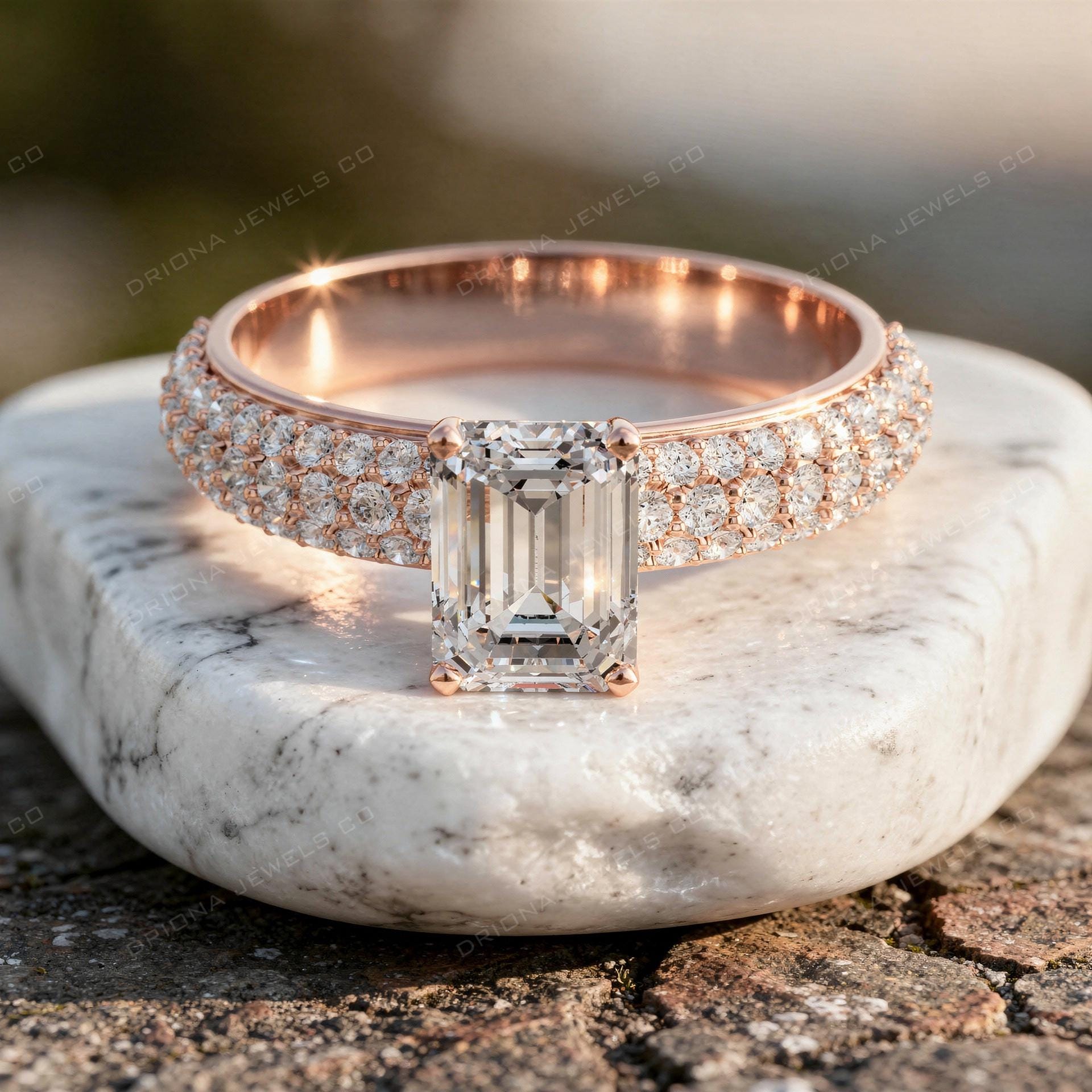 - Emerald Cut Engagement Ring with Pavé Diamond Band