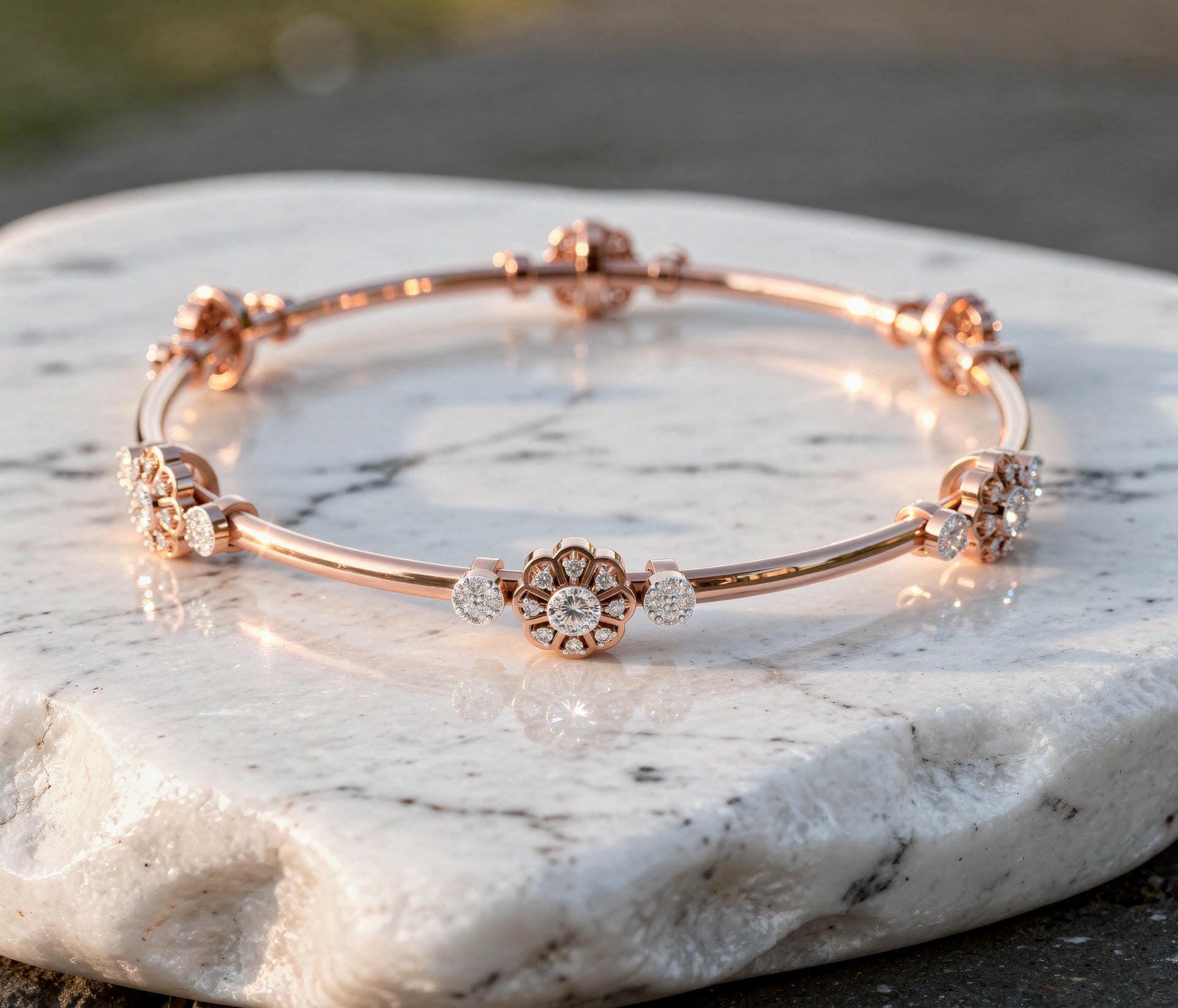 Add effortless elegance to your jewelry collection with this diamond floral bangle bracelet, designed with delicate flower-inspired motifs and brilliant round diamonds. The sleek bangle silhouette offers a perfect balance of modern sophistication and timeless charm, making it ideal for both daily wear and special occasions.