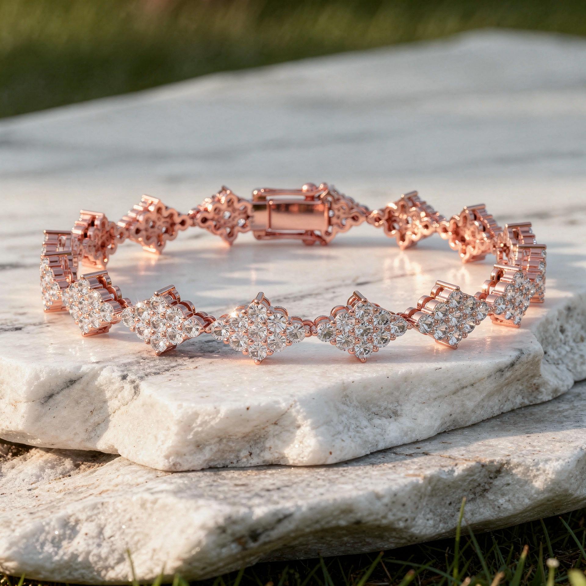 Crafted to make a statement while remaining timeless, this bracelet is perfect for special occasions or elevated everyday wear. Its soft, warm tone paired with high sparkle gives it a graceful yet bold presence, ideal for those who appreciate fine detailing and sophisticated design.