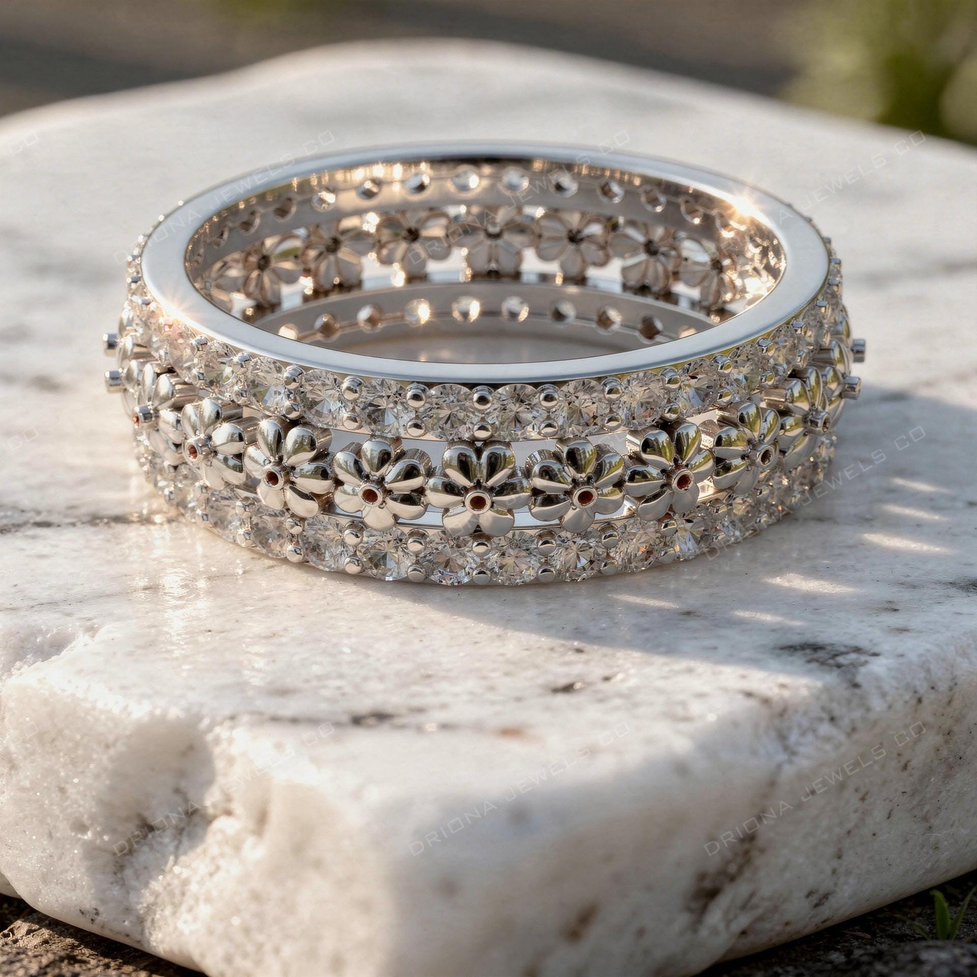 - Floral Diamond Eternity Band Ring β Elegant Stackable Wedding & Anniversary Statement Ring