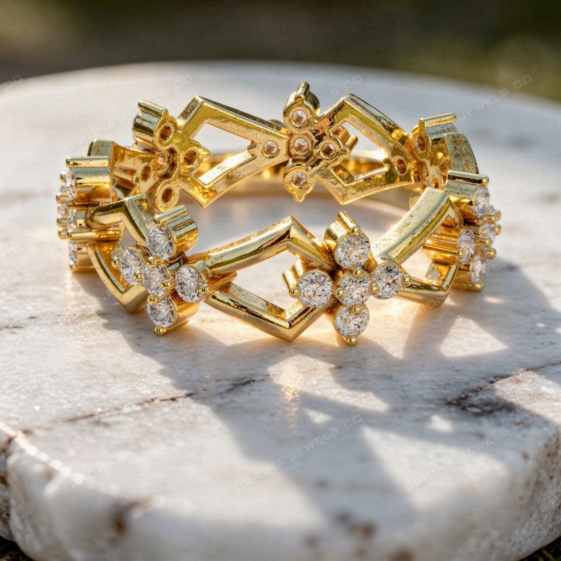 Optimized for Etsy searches such as layered diamond ring, architectural eternity band, and designer diamond ring.