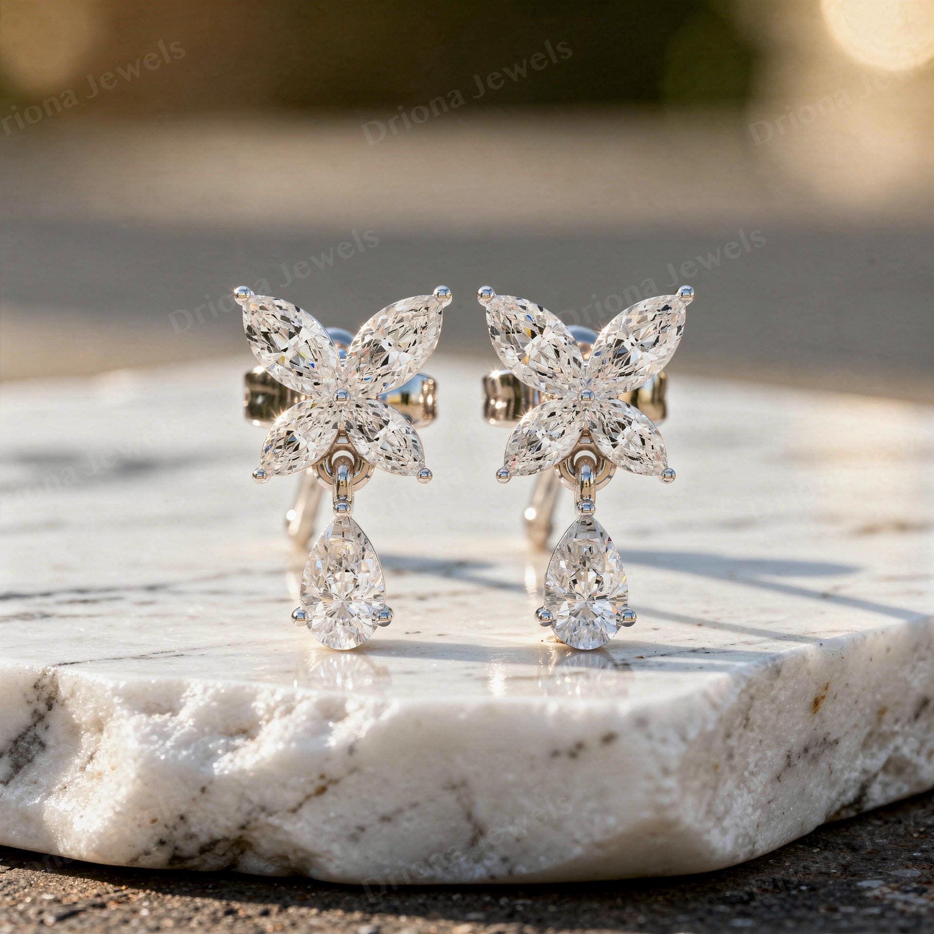 - Floral Drop Stud Earrings | Elegant Flower Teardrop Design