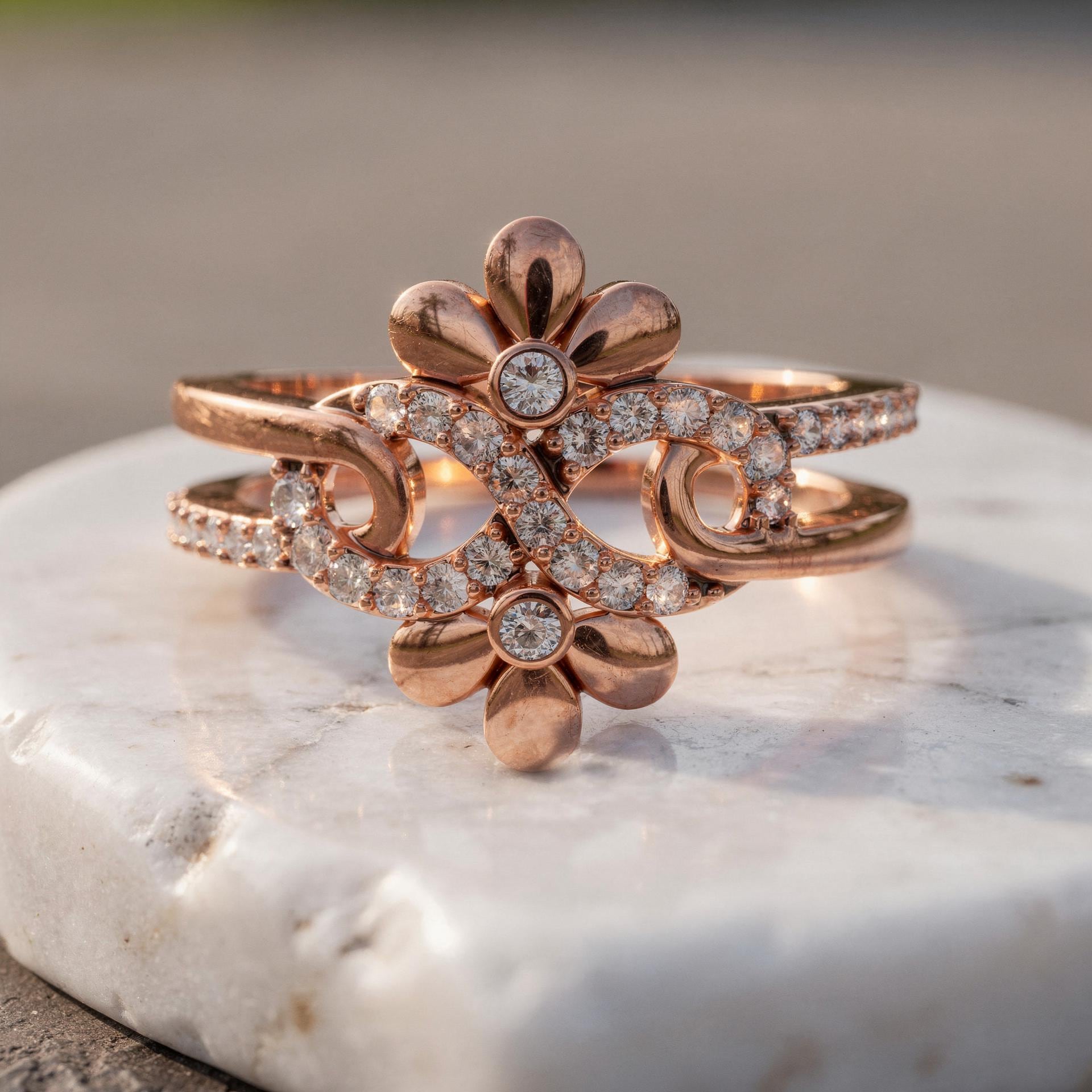 - Floral Infinity Ring, Pavé Diamonds, Solid Gold or Sterling Silver
