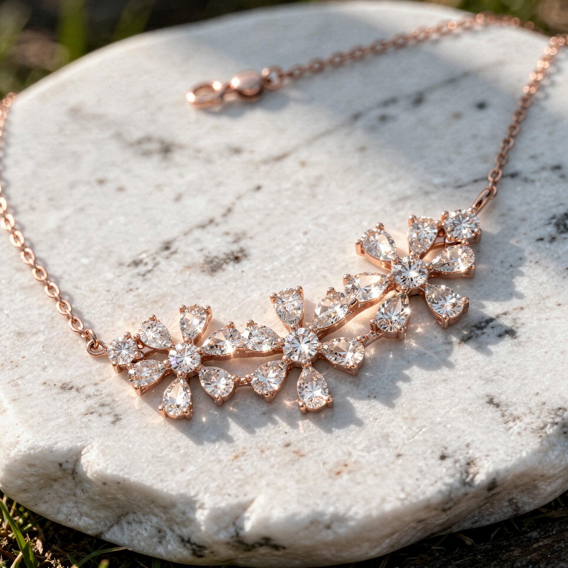 Inspired by nature and timeless femininity, this necklace is perfect for bridal wear, anniversaries, or elegant evening occasions. The balanced floral composition adds presence without feeling heavy, making it ideal for both statement styling and sophisticated everyday luxury.