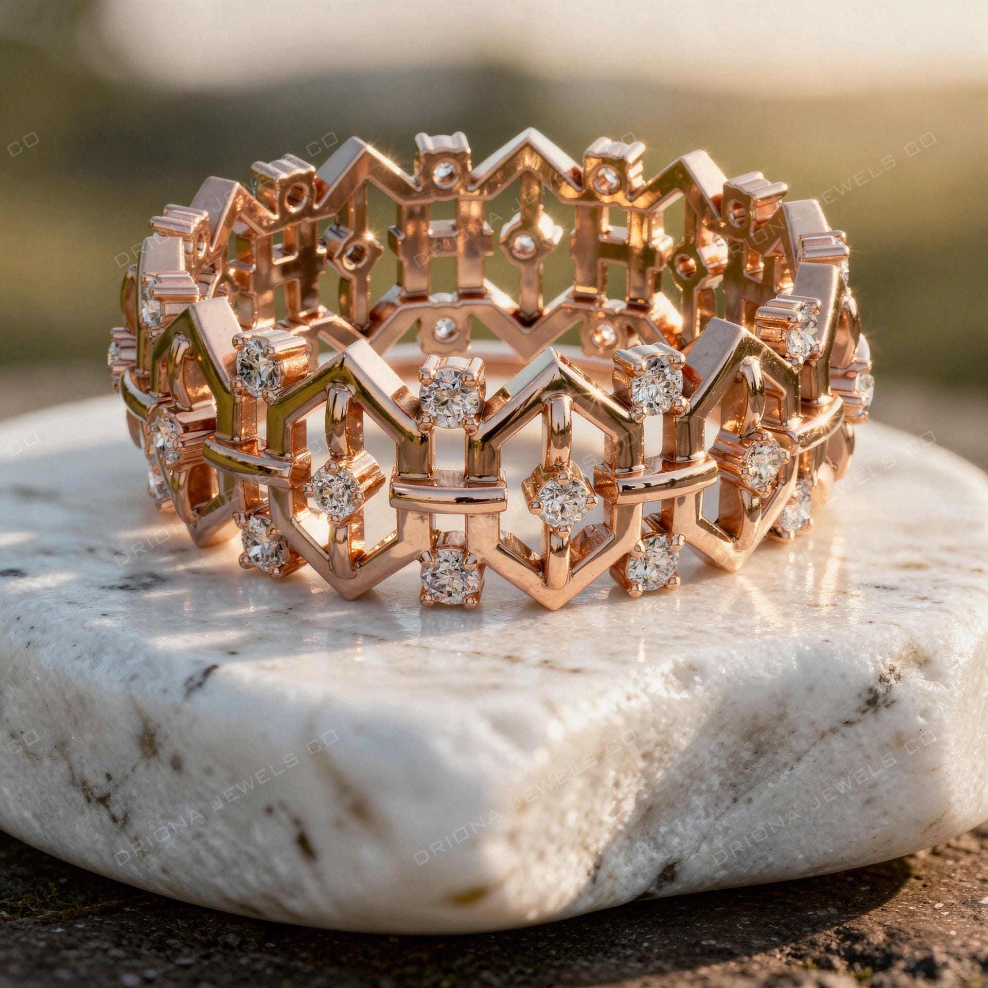 Optimized for Etsy searches such as geometric diamond ring, architectural eternity ring, and statement diamond band.