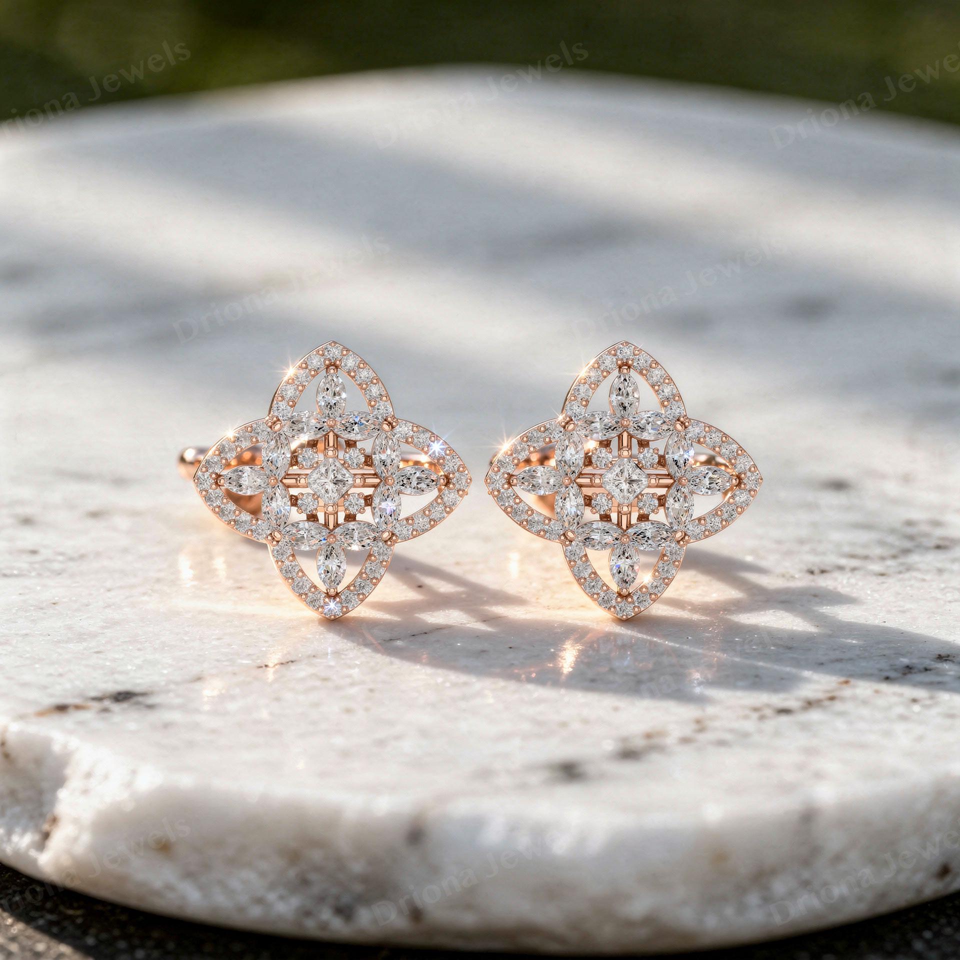 - Geometric Diamond Stud Earrings – Floral Inspired Luxury Design