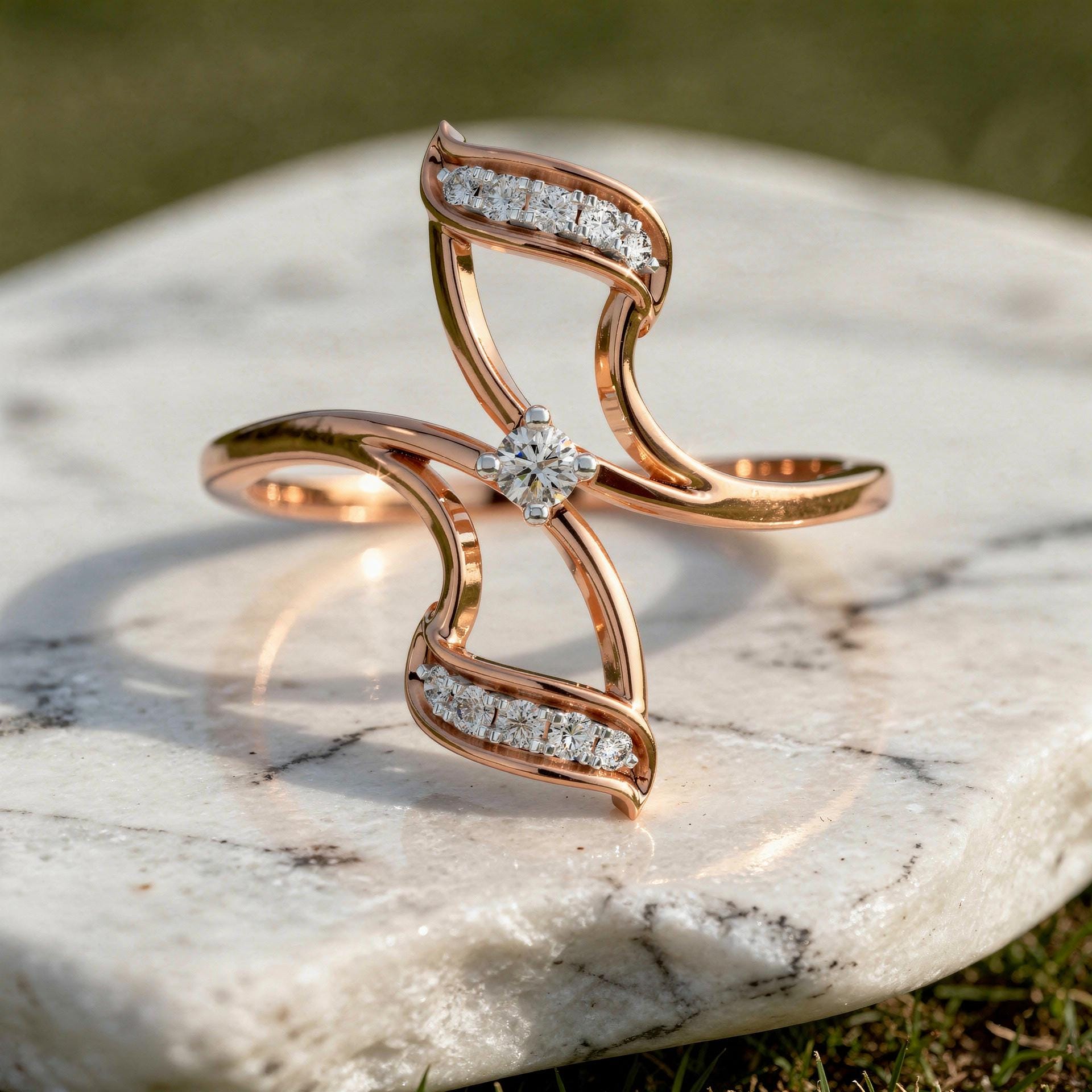Perfect for those who love sleek luxury, this ring blends minimalist styling with soft sparkle. Its sculptural bypass form and smooth contours make it ideal for everyday wear, stacking, or meaningful gifting.