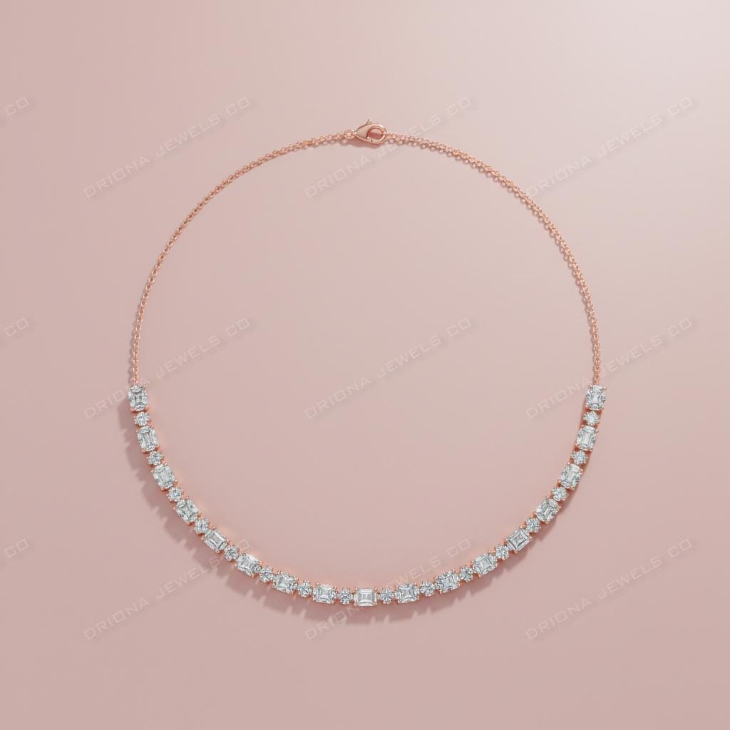 - Graduated Lab-Grown Diamond Necklace, Solid Gold Bridal Jewelry