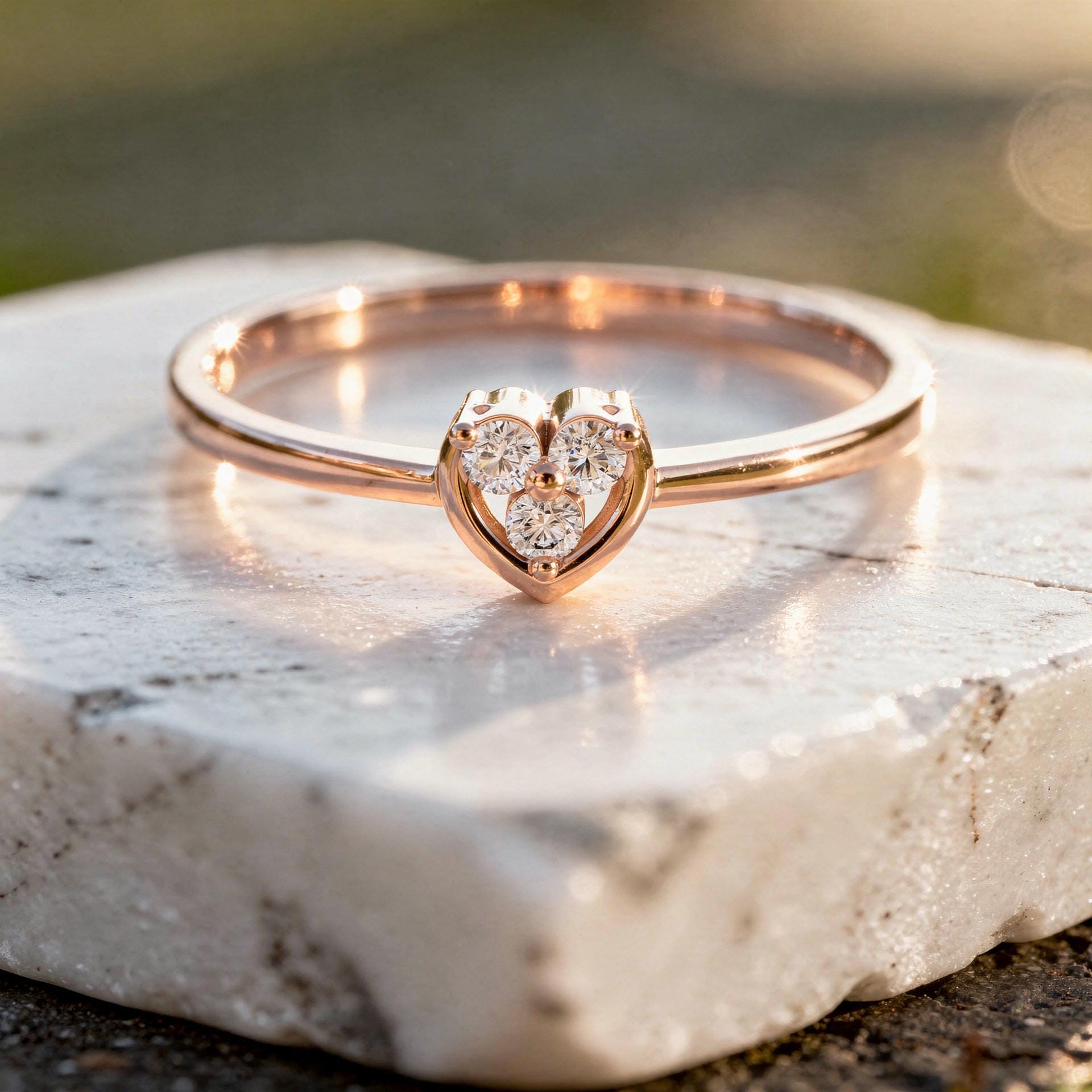 - Heart Diamond Cluster Ring: Dainty Solid Gold Promise Ring