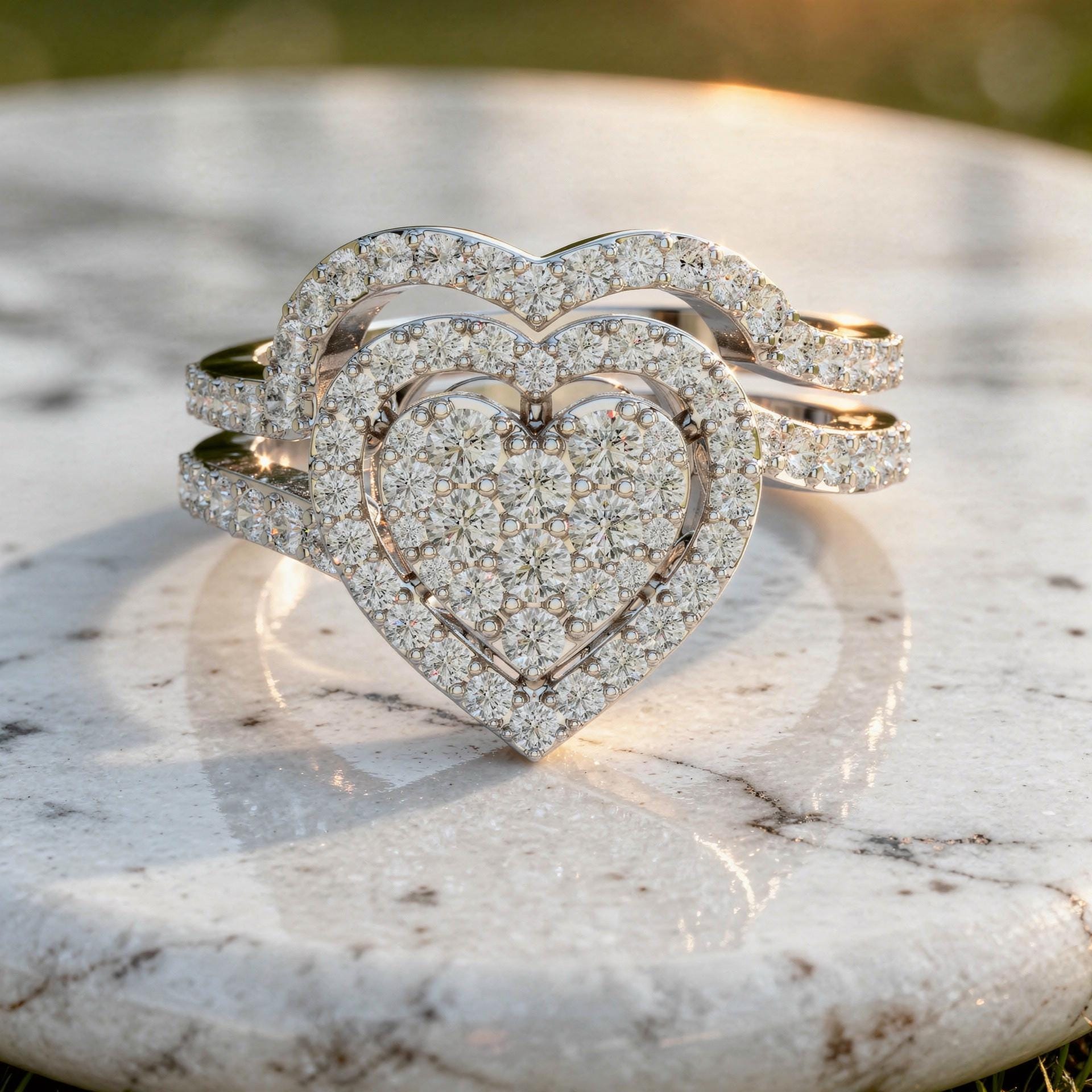 The triple split shank band adds dimension and luxury, creating a bold yet elegant silhouette. This heart-shaped design symbolizes love and devotion, making it perfect for anniversaries, Valentine’s Day, birthdays, or romantic milestone gifts.
