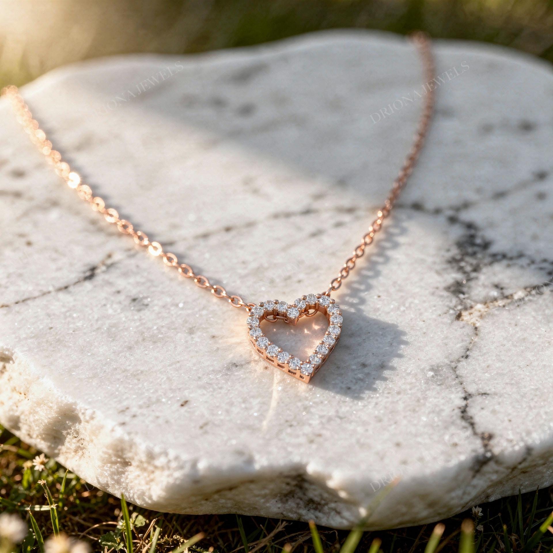 - Open Heart Diamond Necklace, Romantic Gold Pendant, Anniversary & Valentine Gift for Her