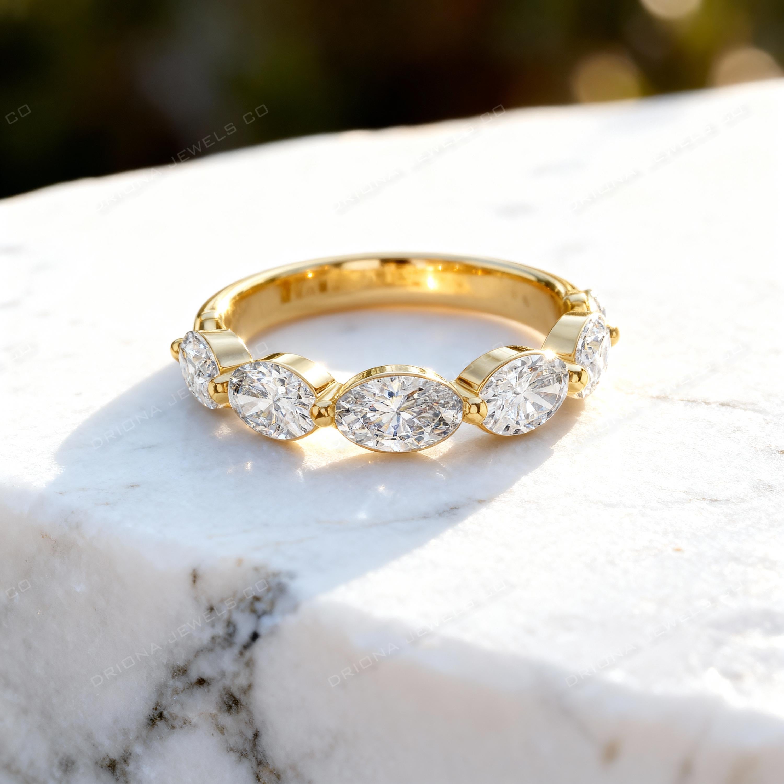 - Oval Diamond Half Eternity Wedding Band, Solid Gold Ring