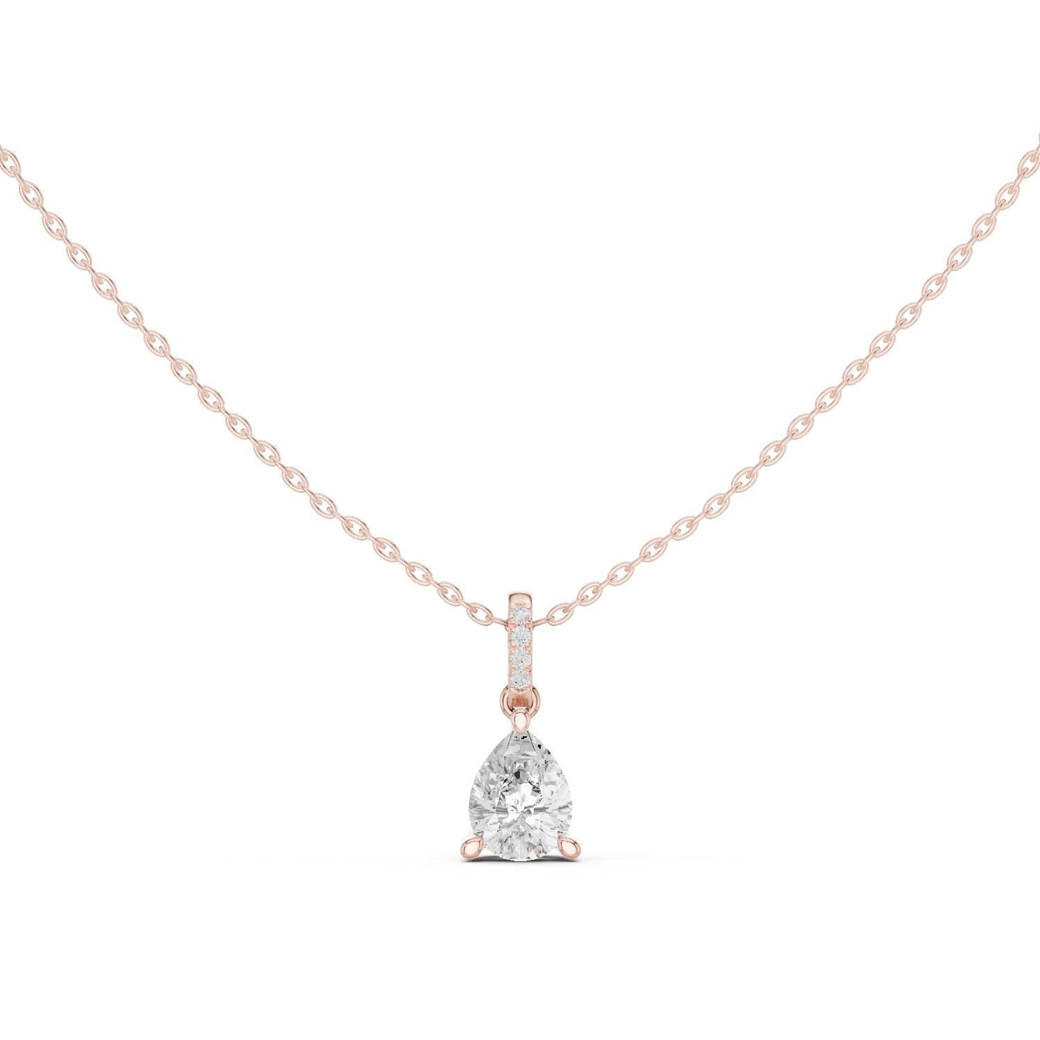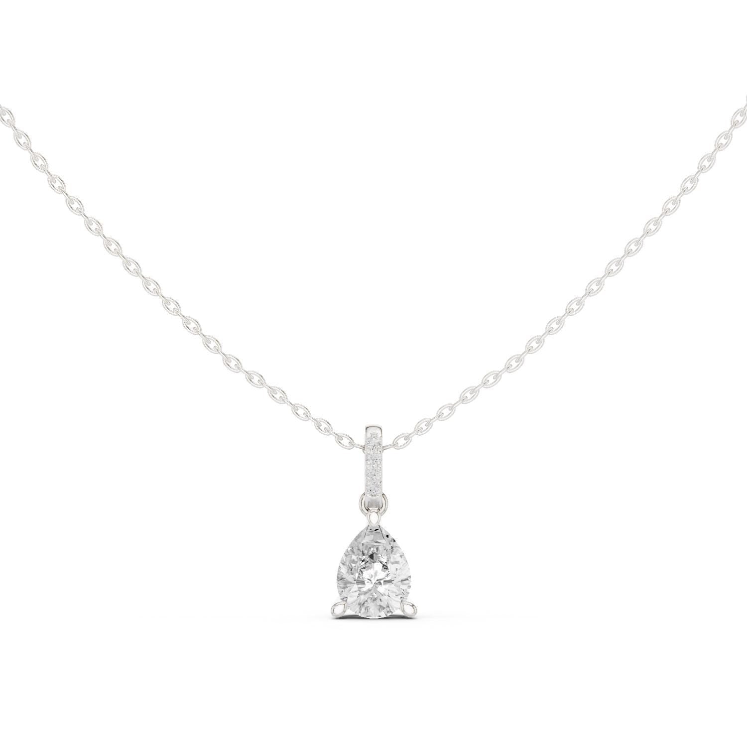 - Pear Cut Diamond Pendant Necklace, Teardrop Solitaire, Prong Set