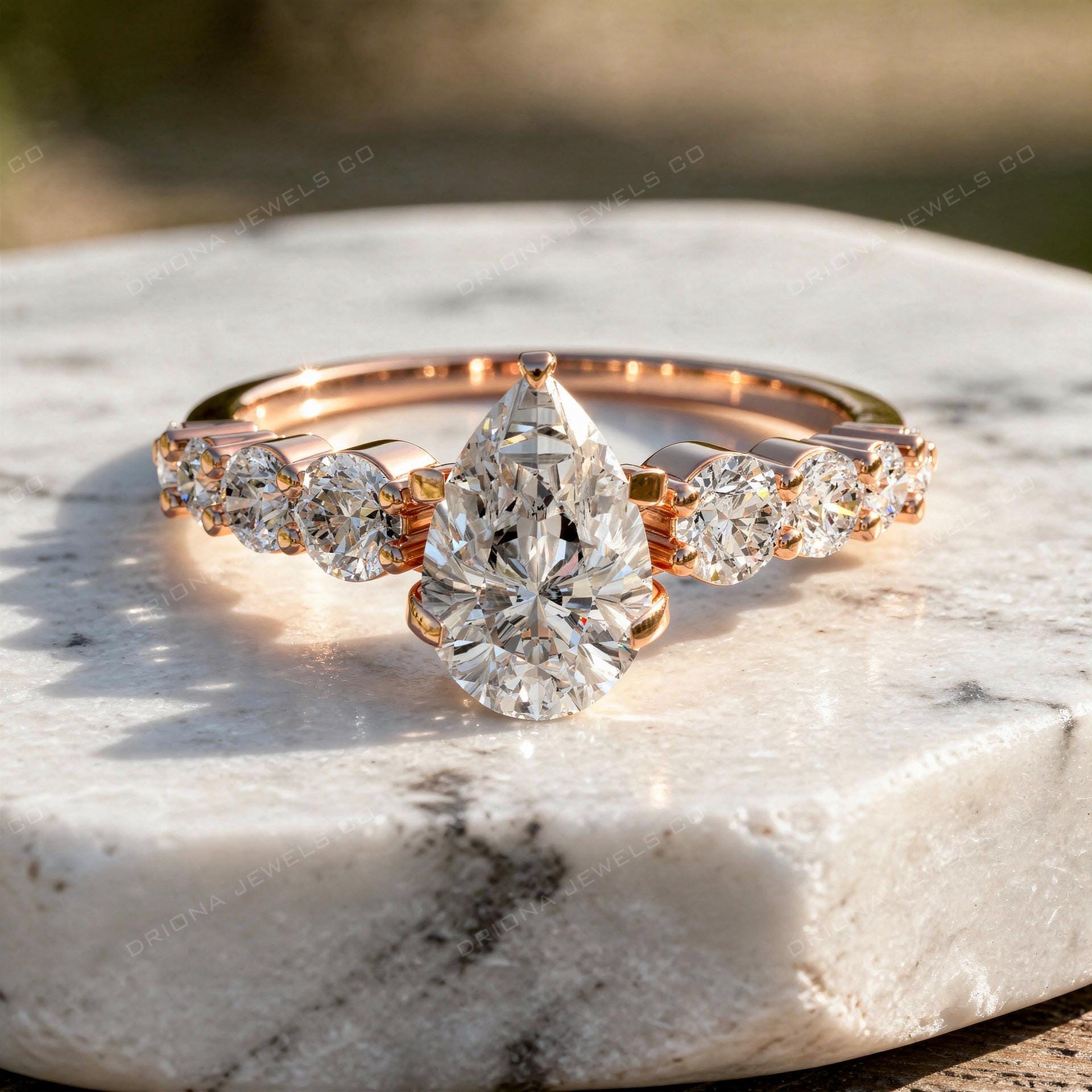 - Pear Cut Engagement Ring with Round Side Stones Elegant Bridal Ring