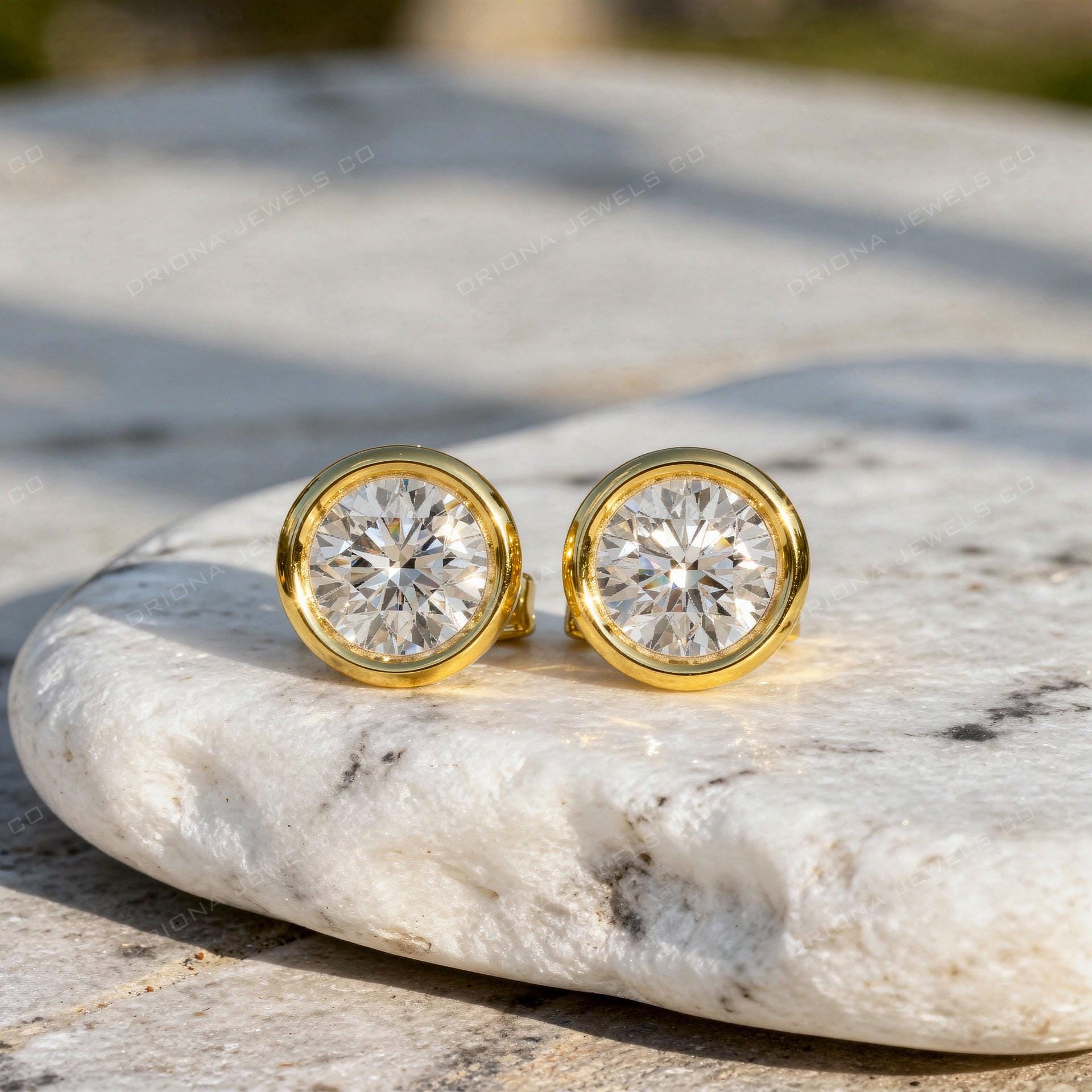 These round bezel stud earrings feature a perfectly balanced round-cut stone framed in a smooth bezel setting for a clean and timeless look. The bezel design enhances durability while giving the earrings a refined, modern finish.