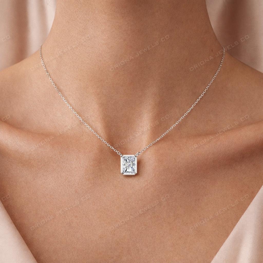 - Radiant Cut Lab-Grown Diamond Necklace, Bezel Set Pendant