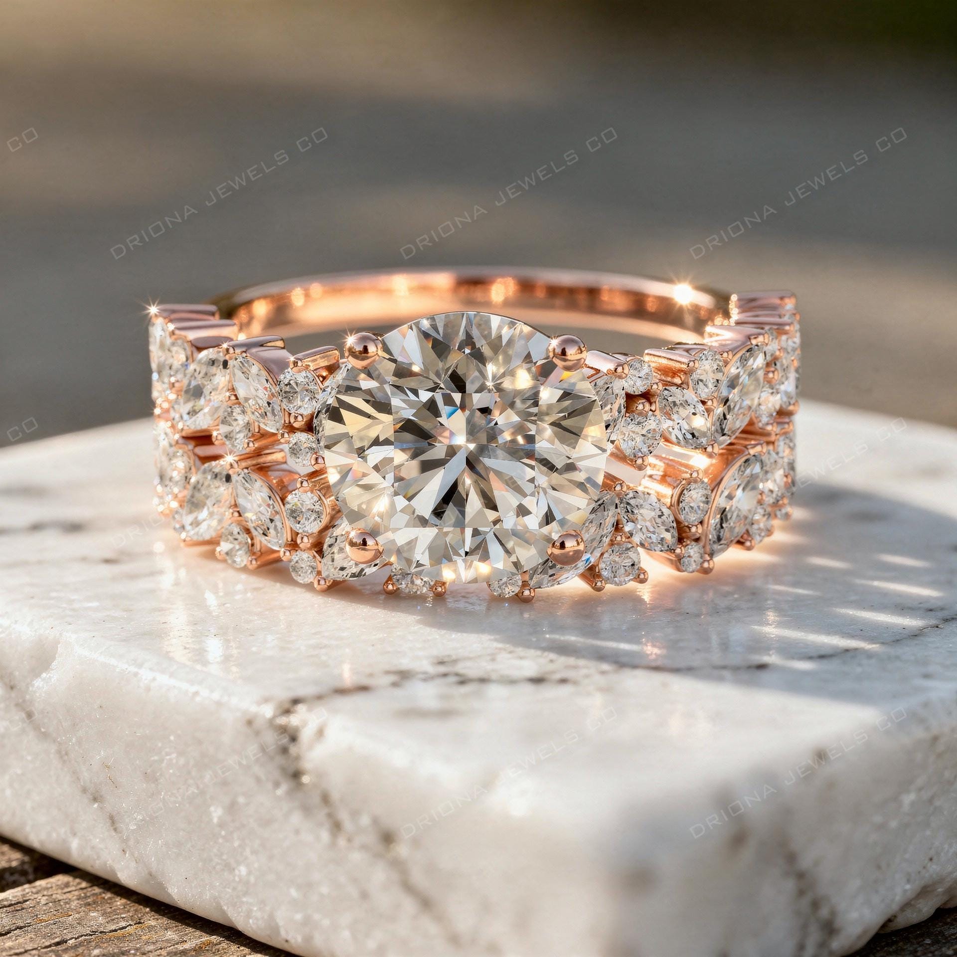 - Round Cut Diamond Statement Ring with Marquise Side Stones β Elegant Gold Bridal Ring