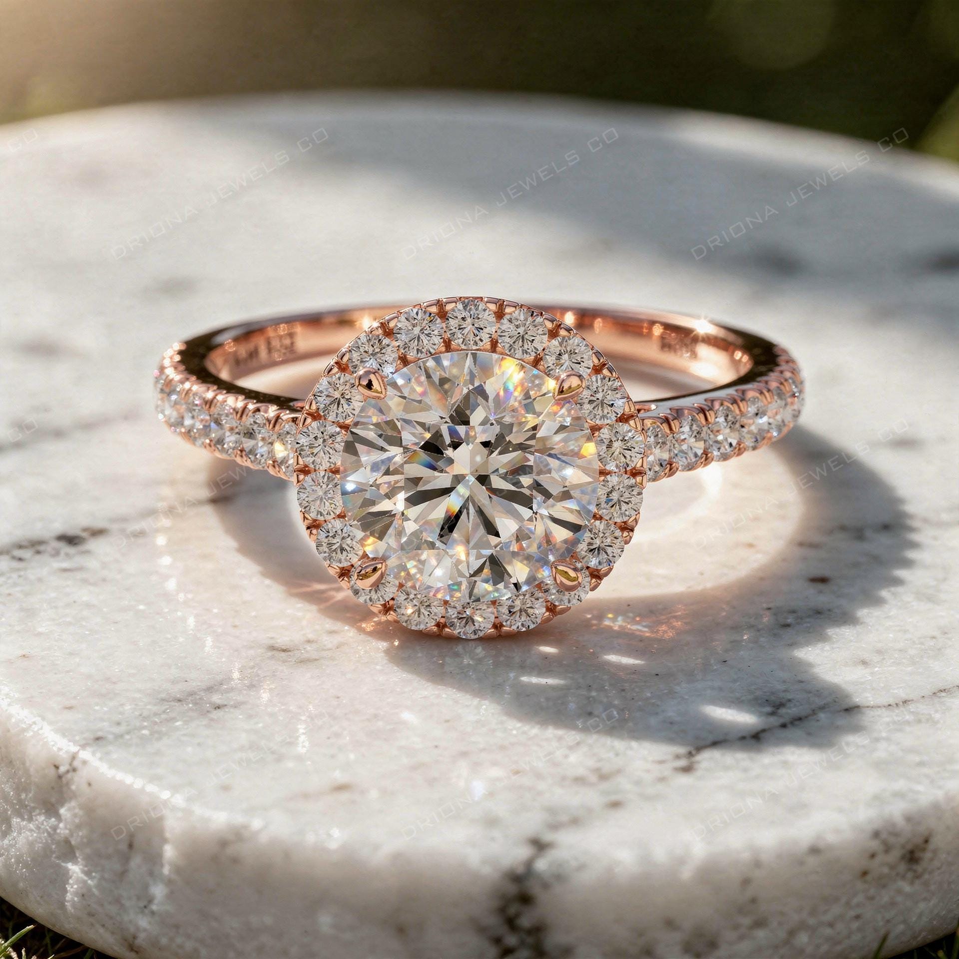 - Round Diamond Halo Engagement Ring with Pavé Band for Proposal, Wedding or Anniversary