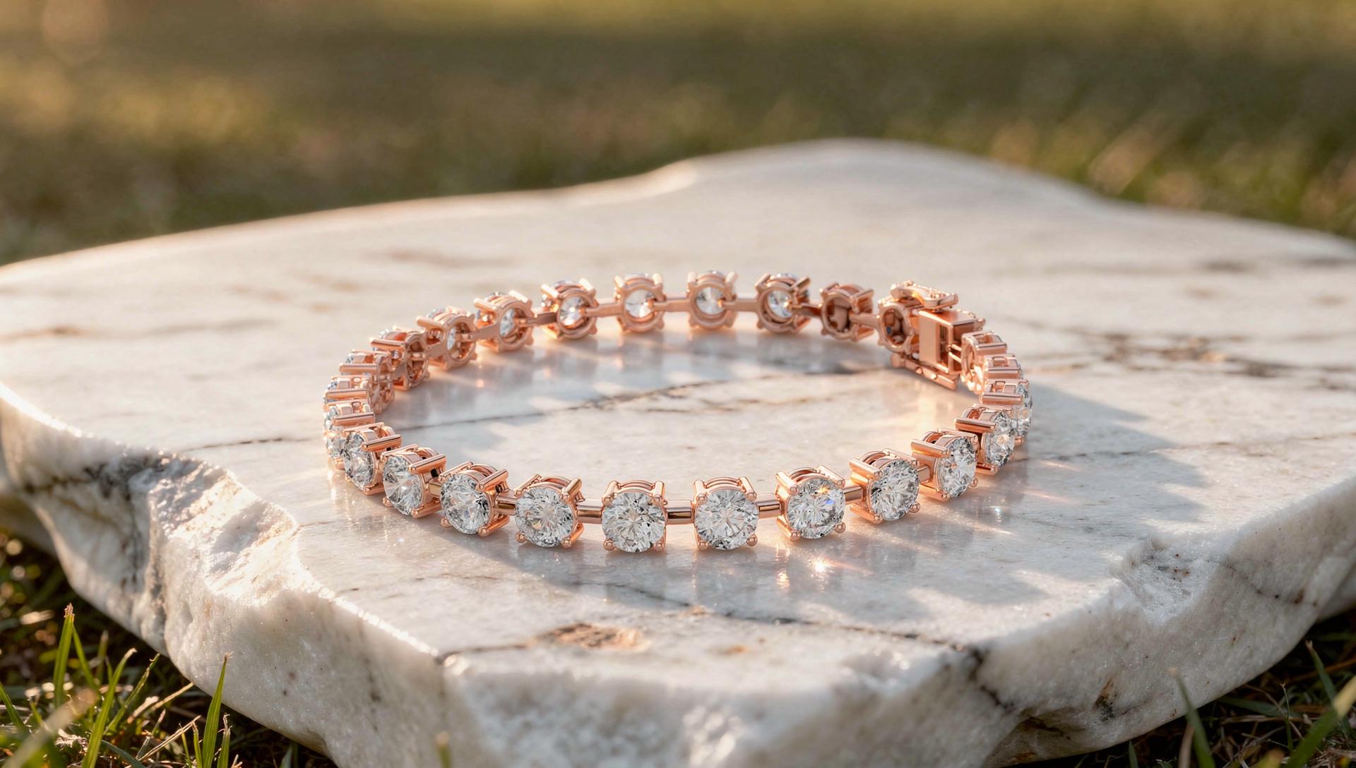 - Round Lab-Grown Diamond Tennis Bracelet, Rose Gold, Anniversary Gift