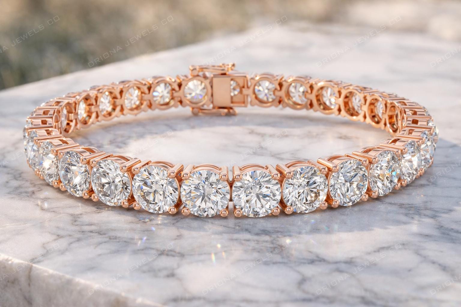 - Round Lab-Grown Diamond Tennis Bracelet, Solid Gold, Anniversary Gift