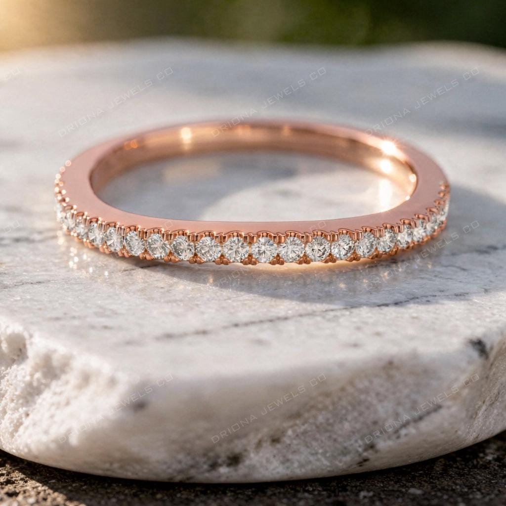 - Slim Diamond Wedding Band, Round Cut Eternity Ring, Stackable Promise Ring