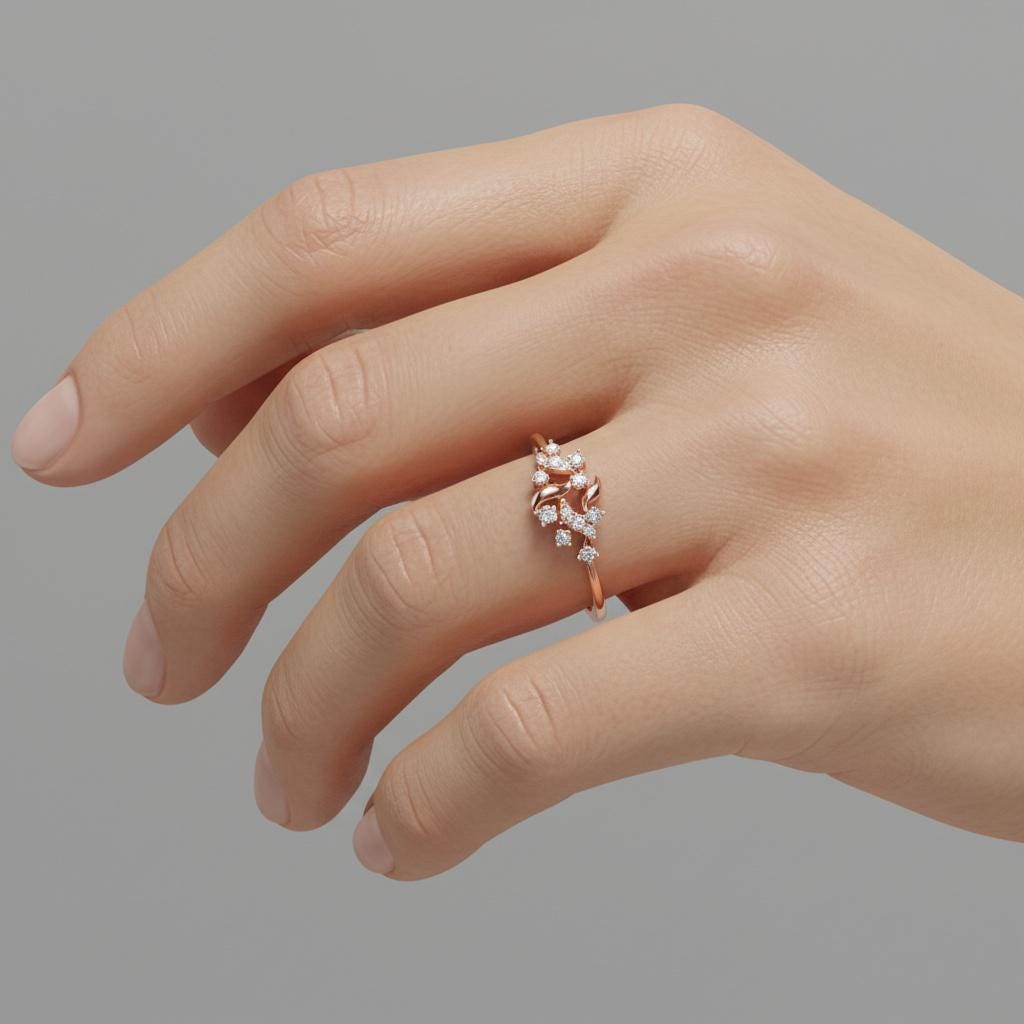 - Vine Diamond Ring, 14k Gold Leaf Design - Nature Inspired