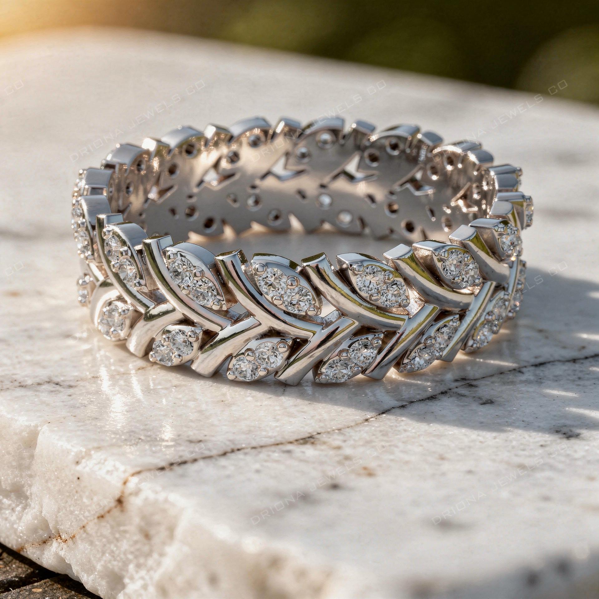 - Vintage Diamond Eternity Ring β Bold Braided Statement Band, Luxury Anniversary Gift