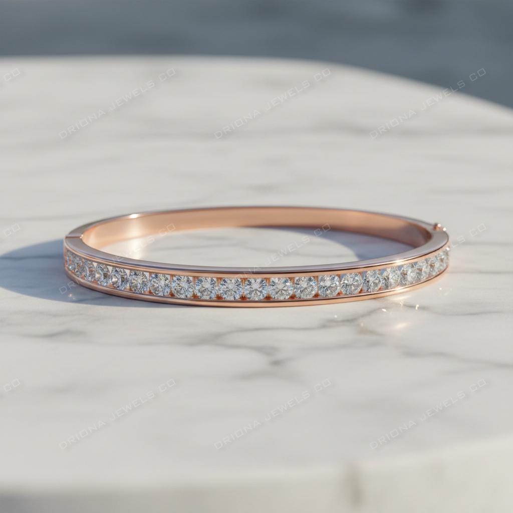 The smooth bangle structure provides a comfortable fit, while the hinged design ensures easy wear and secure closure. Perfect worn alone or stacked, this bracelet transitions effortlessly from daily elegance to formal occasions.